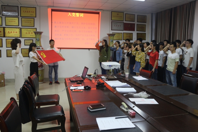 在领誓人的带领下,全体预备党员面向鲜红的党旗进行庄严的入党誓词。宣誓仪式后,党委书记黄良辉同志对新发展的预备党员进行了集体谈话。他强调指出,仪式上的入党是一时的,思想上的入党是一生的。在全面从严治党的形势下,作为一名新党员任何时候都要牢记党的宗旨,加强党性修养,始终对党忠诚,严格要求自己,做“四讲四有”合格党员。他希望同学们加入党组织后,要进一步加强理论学习,坚定理想信念,提高思想政治觉悟;要终身牢记入党誓词,不忘使命和初心,认真履行党员义务责任,严守党规党纪,维护党员形象;要潜心锤炼意志品格,弘扬党的优良传统和作风,积极践行社会主义核心价值观,在学习、工作和生活中充分发挥党员的先锋模范作用。