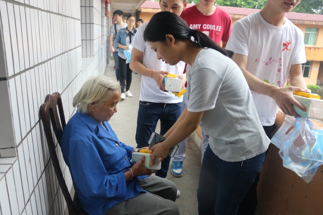 当天上午,在院党委组织委员兼团总支书记南建忠和学生党支部书记闵捷老师的带领下,大家冒着大雨来到湖田敬老院,受到了院方的热情欢迎。由于大部分老人行动不便,在院方工作人员的安排下,师生党员们逐一走进70余位老人的房间零距离问候老人,给每位老人送上了香皂和纸巾等慰问品,然后帮助老人整理房间内务卫生,陪老人们聊天交流,让老人们体会到了儿孙绕膝般的温暖与快乐。在与老人们谈心交流过程中,当了解到有的孤残老人的不幸遭遇后,老师与同学们纷纷拿出随身零钱捐助给老人以尽自己的微薄之力。活动结束大家要离开敬老院时,老人们紧紧握着大家的手连声道谢,大家依依不舍的向老人们道别,留下对老人们深深的祝福。