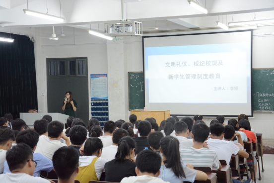 9月12日下午和13日晚,我院学工科副科长李婷老师为新生主讲了“文明礼仪、校纪校规及新的学生管理制度教育”的专题讲座。她从文明礼仪的重要性、大学生文明礼仪常识进行了宣讲,同时就与学生学业、生活、安全相关的校纪校规和管理制度进行了解读,强调新同学从入学开始就要树立纪律观念,增强规矩意识,自觉遵守学校各项管理制度,知晓什么可为、什么不可为,做遵规守纪的文明大学生。