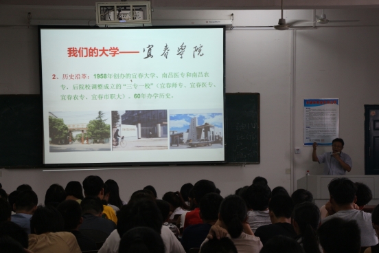 为帮助新生了解校史校情和校园文化,尽快熟悉和适应新的学习生活环境,激发责任感和荣誉感,9月11日和12日,我院党委书记黄良辉同志以“新环境、新起点、新目标、新规划”为题主讲了两堂精彩的入学教育课。他从江西及宜春的人文地理概况讲起,重点介绍了学校及学院的发展历程、办学定位、专业设置、师资力量、办学条件、校园文化、人才培养、办学成就与特色等情况,增强了同学们以校为荣、爱校如家的家人意识。然后他就新同学如何尽快适应并充实度过四年的大学生活,进行了悉心指导,希望同学们要树立远大理想,将青春梦、大学梦融入伟大的中国梦,珍惜大学时光,做好人生规划,明确学习目标;要加强道德修养,遵规守纪守法,积极践行社会主义核心价值观,扣好人生第一粒扣子;要学会独立思考和独立生活,尽快适应新环境,转变学习方式,发奋学习,文理兼修,一专多能,全面发展;要勇于担当,对自己、对家人、对社会负责,积极参加各种公益活动和社会实践活动,提升自身综合素质。