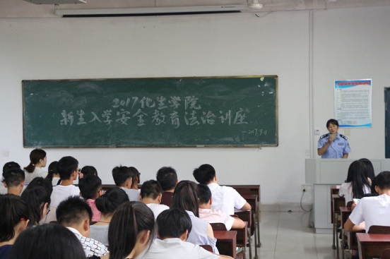 为增强新生的安全防范意识,增进身心健康,9月11日下午和12日上午,我院组织开展了新生安全知识与心理健康教育专题讲座,特邀校园派出所的李小荣、陈建华两位警官为新生讲解安全与法制知识,重点介绍了预防信息泄露、防范诈骗与传销、反恐防爆、以及毒品危害等知识,增强了同学们的安全与法律观念。专职辅导员闵捷老师就有关防盗、防骗、防食物中毒、实验室安全等问题进行了强调,同时针对如何调整心态、正确排解不健康心理问题,进行了心理辅导,让同学们受益匪浅。