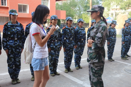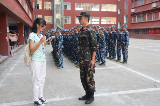 (学生通讯员 施雅婷 时海琴) 夏秋之交,余暑未消,我院2017级新生军训已火热进行到第五天。本次军训教官除了武警官兵外,还安排了本校退伍学生和国旗护卫队6名大二的同学担任我院军训全职教官或助教,他们分别是来自经管学院的汪煜龙、音舞学院的付美津和我院的曾庆波、邓志海、于苗苗、马春艳同学。既是军训教官又是在校学生的双重身份,如何完成好这次军训带教工作任务,对他们是不小的考验。几天的带教经历下来,他们体现出的以身作则、全心带教、严格训练的工作态度和同学之间促膝交流、悉心关爱的学长情怀,完美地发挥了双重身份的优势,取得了满意的训练成效。笔者来到了军训场地采访了几名军训学生教官及助教,听听他们的带教感受。
