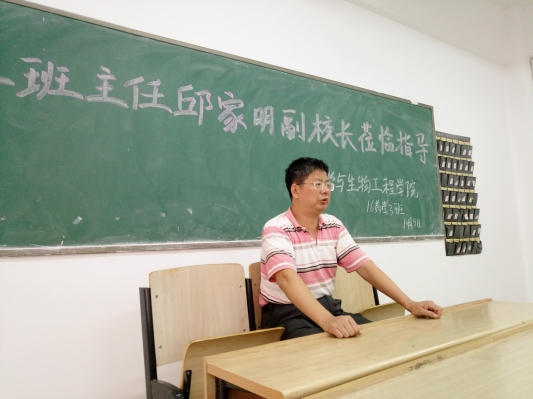 (学生通讯员 李豪 张婧怡) 为加强大学生思想政治教育工作,促进学生健康成长成才,10月9日下午,校党委委员、副校长邱家明同志在我院党委书记黄良辉的陪同下,来到他负责联系的2016级药学(3)班,以第二班主任的身份与同学们进行了一次亲切的座谈交流活动。