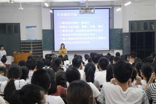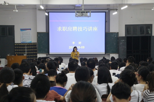 李婷老师就国家大学生就业政策、求职应聘的一般程序、求职简历的撰写与投递、面试心态与技巧、就业协议签订与确认等方面内容,为同学们作了详细讲解。她特别提醒同学们要多关注国家就业政策,重点讲解了在撰写求职简历和求职信中如何实事求是的“包装”自己,突出自己的优点,吸引用人单位的眼球。接着,她结合自己在企业的面试工作经历,讲解了一些求职面试的常用技巧,如何做到在面试中脱颖而出,提请同学们在面试前要做好充分准备,对面试提问要心中有数,在竞职陈述时要理由充分、条理清晰、突出自身优势,从而提高面试成功率。