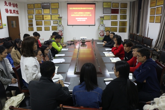 (学生通讯员 陈毫 王婷)为了加强学生党员发展对象的培养教育,帮助发展对象进一步明确入党动机,提高政治思想素质,近期我院组织举办了下半年党员发展对象专题培训班。在完成了培训课程学习的基础上,11月6日晚,我院组织参训的20余名学生党员发展对象开展了一次专题学习讨论会。我院党委书记黄良辉、院党委组织委员南建忠、研究生支部书记付磊清、学生党支部书记闵捷一同出席会议,讨论会由南建忠主持。