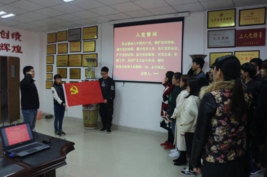 宣誓仪式正式开始,在南老师的带领下,24名预备党员右手握拳举过肩头,面向鲜红的党旗,逐句庄严宣誓。宣誓完毕,预备党员们表示体会到了加入党组织的神圣,受到了精神上的洗礼,更加坚定了为共产主义事业奋斗终身的信心和决心,决心在今后的学习、工作和生活中按照党员的标准严格要求自己,充分发挥党员的先锋模范带头作用,争取早日成为一名合格的中共正式党员。