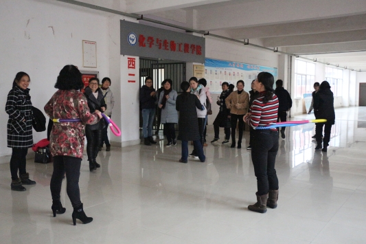 (学生通讯员 黄艳 刘千一)为庆祝第108个“三八”国际劳动妇女节,丰富女教职工的业余生活, 3月7日下午,我院组织全体女教工在二教楼大厅开展了一次趣味素拓活动。