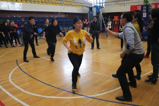 比赛过程中,摇绳的男教工与跳绳的女教工密切配合,动作娴熟,节奏明快,神采飞扬,体现出齐心协力的团队协作精神,尤其是第一代表队以3分钟完成跳绳130人次的优异成绩位列全校第三实属不易。成绩的取得源自赛前艰苦的训练,大家利用业余时间挥汗集训,不怕苦累,收获佳绩的同时更是乐在其中。