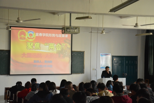 (学生通讯员 刘淑云 胡丽文)举世瞩目、全民关注的十三届全国人大一次会议和全国政协十三届一次会议(以下简称全国“两会”)胜利闭幕后,为了让广大青年学生及时学习领会“两会”精神,按照学校统一安排,3月28日下午,由校党委书记肖华茵领衔与我院党委书记黄良辉、学工科长李婷和团总支书记南建忠四位宣讲老师,以形势政策课的开讲方式,分四个场次在我院全体学生中开展了一次学习领会全国“两会”精神的集中宣讲活动。