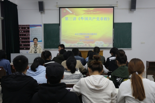 开班仪式后,我院学生党支部书记闵捷老师以学习《中国共产党章程》为题主讲了第一堂党课,帮助同学们学习了解党的性质、宗旨、指导思想、党的基本路线和主张、党员条件、党员的义务与权利、党的组织和纪律等基本知识,使同学们加深了对党的认识,增强了党章意识和使命意识。