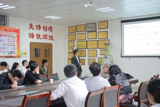 刘路教授向大家介绍了苯酚及其衍生物高选择性合成的研究背景、反应机理及合成过程,并现场与师生进行了互动交流与讨论,让师生们享受了一场高水平的学术大餐。