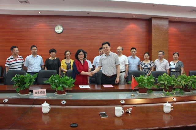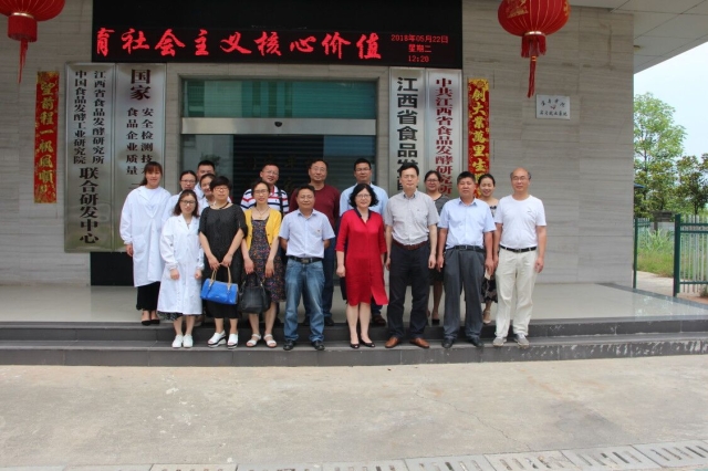 ( 陶华蕾) 5月22日,我院院长郭孟萍、院党委书记黄良辉、副院长熊知行及相关科室人员和专业教师一行,前往江西省食品发酵研究所就合作开展项目研究、平台互建、资源开发利用和建立实习就业基地等事宜进行了洽谈,省食品发酵研究所所长鲁青、副所长江军山、米粉中心主任黄安全、果蔬中心主任肖勇生、微生物中心主任包珍、富硒中心主任王训斌、食品检测中心主任张良及人事科主任易雪荣出席了洽谈会。