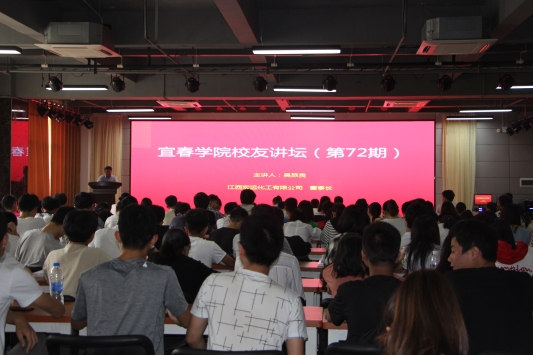 吴旅良校友作为80年代毕业的一位学长,拥有丰富的人生阅历和创业奋斗经历,在实业报国、科技创新的道路上作出了突出成就。面对年轻的学弟学妹,他知无不言、言无不尽,分享了他的求学和创业故事及人生感悟。他深情回忆了在母校原宜春师专的学习生活,期间他专心学业,热爱阅读,热爱体育,兴趣广泛,全面发展,为他此后的人生发展奠定了扎实基础。他希望同学们要珍惜大学时光,学好知识和本领,成为品学兼优全面发展的人才。他向同学们讲述了自己大学毕业之后从一名人民教师到国营玻璃厂技术骨干,再到独立创办自己的公司,一步一步艰辛创业的历程,在技术创新、产品创新、管理创新、营销创新的道路上不断追求新目标新高度,取得了多项创新成果,成为行业专家。他付出心血创办的江西宏远化工有限公司,由小变大、由弱变强,产品远销国内外,成为同行业中的高新技术企业,实现了企业技术进步和经济效益的飞跃,为地方经济社会发展做出了突出贡献。谈到多年来创业的心得体会,他送给同学们三个词共勉——“理想、行动、坚持”,教诲同学们首先要确立切合实际的职业理想和目标,结合新时代的特点和需要,给自己定好位、定好型。其次是要树立归零思维、学徒思维、海绵思维、空杯思维,沉下心来,脚踏实地,从小事做起,付诸行动。第三是要有持之以恒、不折不挠的精神和积极乐观的心态,不惧挫折、不怕失败,不忘初心,坚持到底,必定成功。最后,他表示欢迎同学们到他的公司去实习和就业。