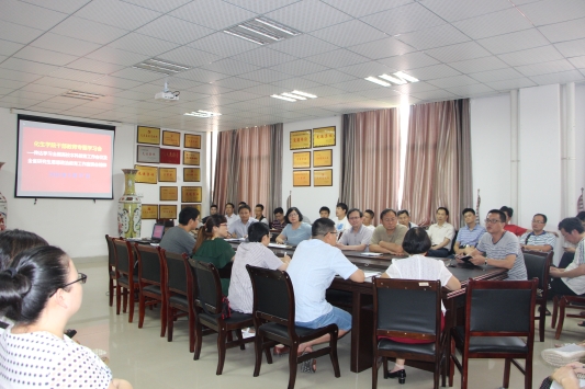 (化生学院供稿) 6月27日下午,我院在院会议室召开干部教师大会,专题传达学习新时代全国高校本科教育工作会议精神和全省研究生思想政治教育工作座谈会精神。我院院长郭孟萍、院党委书记黄良辉、副院长熊知行及全院干部教师参加了学习会。会议由黄良辉主持。