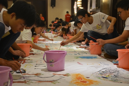 1日上午,导师大定向正式拉开活动的序幕,张毅介绍活动概况,并希望大家可以全心投入、感受整个活动过程,敞开自己的心扉,信任他人并多加沟通交流。全体学生被分为八组,在设计队徽和讨论队名、口号、队歌的过程中,形成了团队凝聚力,增强了团队意识。当日下午相继进行了“黄白球”游戏、二人对话、“被迫与选择”活动。通过“黄白球”游戏,张毅让同学们认识到“共赢”的重要,使同学们跳出思维的桎梏,有了更长远的目光。晚上是“漫漫人生路”活动环节,两人为搭档,先后带上眼罩,指引对方通过一系列的障碍,再到搭档彼此分开去寻找对方,整个过程让同学们的心渐渐注满感恩之血,懂得了眼前人的珍重。活动后,很多人分享自己感受的时候已哽咽,甚至流下了泪水。
