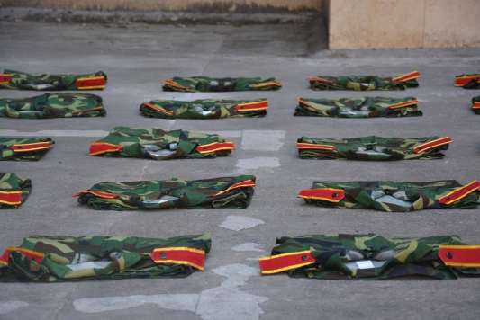 他们会听着教官一声又一声的口号,重复着一次又一次的动作,让汗水一遍又一遍流过相同的地方,仰起头来却依旧是那一副副坚忍的面庞。