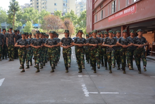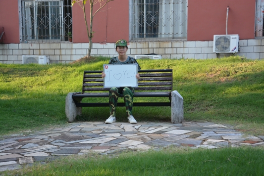 看着镜子里穿着肥大军训服的自己,仿佛变得成熟稳重但又稚气未脱,大学军训就这样猝不及防地开始了。尖刀排的训练总是比别的排更累更苦,即使化生学院军训场地比其他院荫蔽处更多,相比站在阴影处的其他排,我们总是沐浴着阳光站下去。训练齐步走脚背必须绷直且要在同一个平面内,手放置的位置也需平齐、角度必须一致,常常一个简单的动作需要定上十分钟。不过这样也挺不错,喊口号、唱军歌、站军姿、齐步走、正步走总觉得自己排表现的比其他排要好得多,甚至我们的水杯也摆的更为整齐。