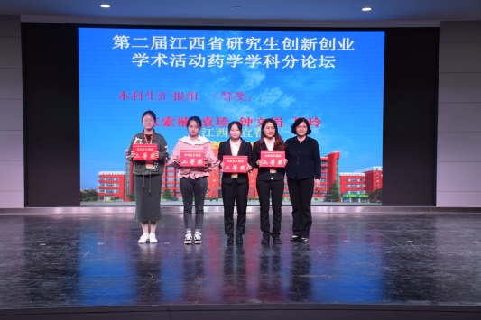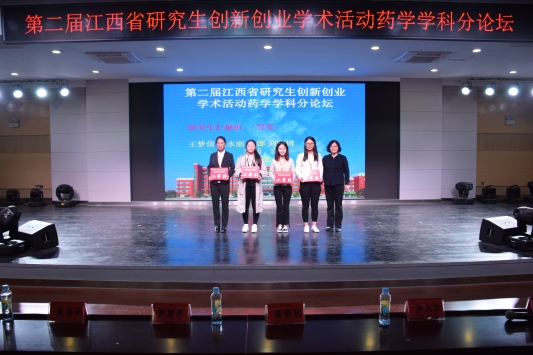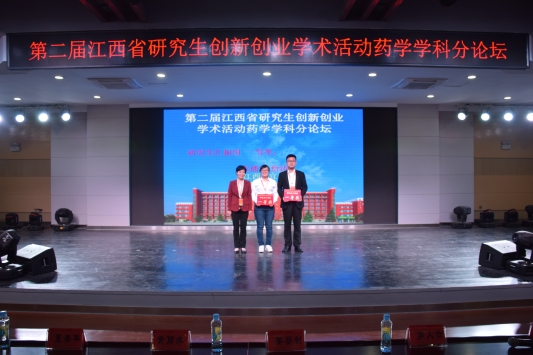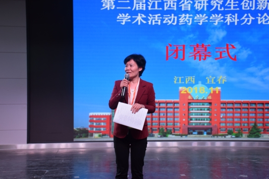 在论坛闭幕式上,举行了优秀论文获得者颁奖仪式。省药学学科联盟负责人朱卫丰教授对本次论坛活动进行了总结,并宣布江西科技师范大学为第三届江西省研究生创新创业学术交流活动药学学科分论坛的承办单位。