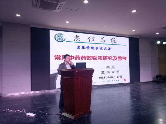(学生通讯员 唐文霞 熊舒琴 黄远望 许虎文)为促进药学专业研究生创新创业学术交流与合作,同时为药学类研究生搭建交流展示科技创新成果的开放式平台,培育医药研究领域新生力量,11月4日,江西省研究生创新创业学术交流活动药学学科分论坛在我校隆重举行。本次论坛由江西省人民政府学位委员会办公室主办,宜春学院、江西省药学学科联盟承办。论坛活动议程分为论坛开幕式、专家学术报告、壁报交流、学生创新创业成果报告等环节。共有来自江西中医药大学、南昌大学、江西科技师范大学、赣南医学院、九江学院、宜春学院等六所药学学科联盟高校的师生代表近100人参加了本次论坛。