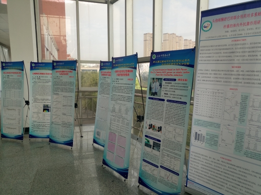 在壁报交流环节,共有来自药学联盟高校选送的14篇高水平的研究生创新创业学术论文参与现场展示交流。
