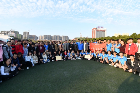 校运会闭幕后,校党委书记李雪南、副校长蒋钰、余新卫、纪委书记张梅看望我院运动队员并合影留念
