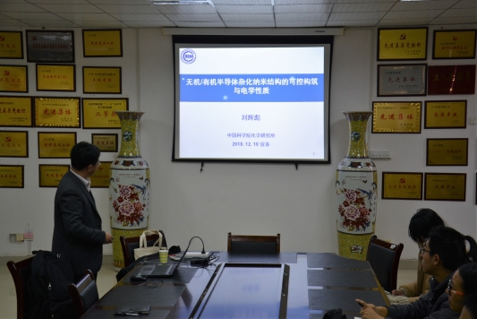 (学生通讯员 谢婕 史辛豪)12月10日上午,我校知名校友、中国科学院化学研究所研究员、中国科学院大学化学院教授、博士生导师刘辉彪,应邀回母校做客第451期学府讲坛,在我院会议室为师生作了题为《无机/有机半导体杂化纳米结构的可控构筑与电学性质》的精彩学术报告。我院院长郭孟萍出席并主持报告会,我院化学和应用化学专业师生有幸聆听了此次学术报告。
