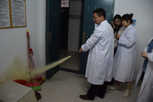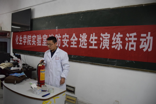 演练开始前,南老师就实验室存在的安全隐患向同学们提出了几点注意事项,希望同学们重视实验室的安全问题,实验时按要求规范操作,离开实验室时关闭用电用火器具,消除火灾隐患。随后,南老师向同学们详细讲解了灭火器的使用方法以及相关注意事项,并亲自示范了灭火器的使用方法。接着,南老师结合生活实际,讲解了火险隐患、火灾发生时的注意事项以及应急自救方法。最后,在南老师的指挥下,同学们伴着警铃声,弯着腰、猫着步、捂着鼻,紧张有序的进行了实验室安全逃生演练。
