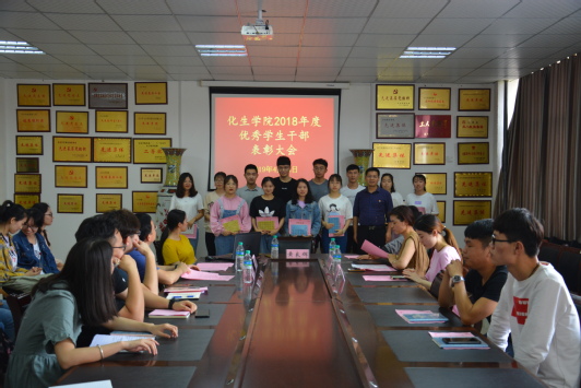 (学生通讯员 过雯 何小燕)为推动大学生骨干队伍建设,激励学生干部成长进步,促进学生工作有效开展,4月26日中午,我院在院会议室召开了2018年度优秀学生干部表彰大会。我院党委书记黄良辉、团总支书记南建忠及辅导员彭勃、闵捷、简心怡出席会议,我院各学生组织、各班级主要学生干部参加了会议。表彰大会由我院学工科科长李婷主持。