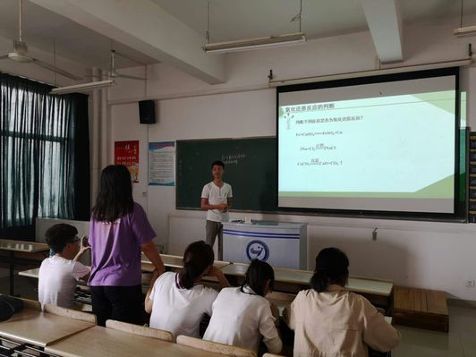 对于师范类专业学生而言,师范基本技能训练至关重要。在此次实践周内,针对化学(师范)专业的同学,安排了案例教学设计及课堂模拟试讲演练的实践环节。同学们在老师的指导下,自行开展教学设计和课件制作,然后通过模拟课堂逐一进行试讲练习,开展现场讨论交流,互相学习,取长补短,让同学们身临其境学习掌握教学基本技能和方法,学会开放式、互动式、启发式的新型教学方式。每位同学模拟授课结束后,指导老师从课前教案准备、讲课过程与表达能力、板书技巧等方面进行点评,肯定优点,指出不足,提出改进建议。通过模拟课堂教学,让同学们更加深了对教师这一职业特点和能力标准的认识,锻炼提高了教学基本技能,从而激励同学们勤学苦练,努力成为一名合格的人民教师。