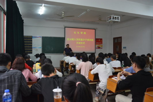 5月20日晚,举行了本期入党积极分子培训班简短的开班式。开班式上黄良辉作了动员讲话,他强调了开展入党积极分子集中培训的重要意义,要求全体参训学员要认真学习,积极思考,学有所获,以知促行,进一步坚定理想信念,端正入党动机,努力提高思想政治觉悟和政治水平,在政治上思想上行动上积极向党组织靠拢。