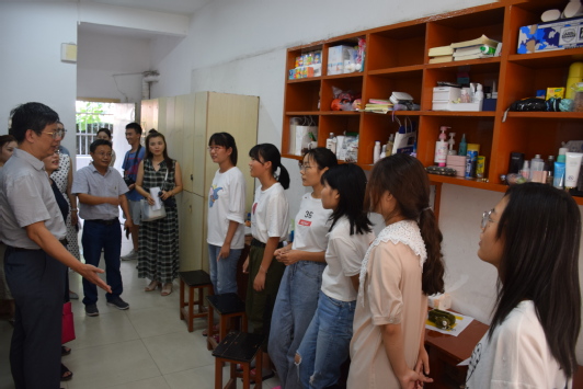 9月8日下午,校党委委员、副校长邱家明,在我院院长郭孟萍、院党委书记黄良辉、院党委副书记王俊峰等同志陪同下,一同走访了我院2019级新生宿舍,为刚入学的新同学带去了亲切的关怀和问候。