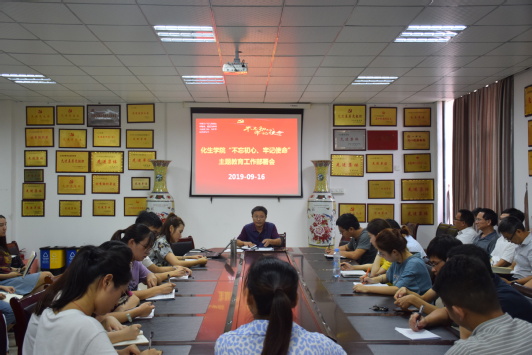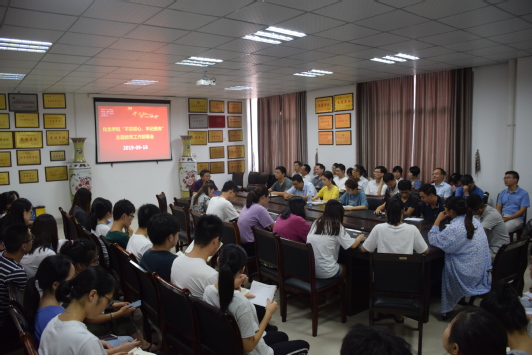 会上,黄良辉向大家传达学习了9月12日全校“不忘初心、牢记使命”主题教育工作部署会上省委第六巡回指导组长陈松远的指导讲话精神和校党委书记李雪南的动员讲话精神,传达解读了《宜春学院“不忘初心、牢记使命”主题教育实施方案》的内容和要求,并就我院开展“不忘初心、牢记使命”主题教育作了专题动员部署。他强调,全院上下要深刻认识开展这次主题教育的重大意义,按照主题教育的目标要求和学校的工作安排,扎实有效的开展好这次主题教育。要求全院党员干部和师生党员要提高政治站位,强化政治担当,以高度的政治自觉参与这次主题教育,努力实现“理论学习有收获、思想政治受洗礼、干事创业敢担当、为民服务解难题、清正廉洁做表率”的目标要求。要把深入学习贯彻习近平新时代中国特色社会主义思想作为根本任务,认真贯彻落实习近平总书记视察江西重要讲话精神,答好“时代之问”,写好“奋进之笔”;要把主题教育与推进基层党建工作结合起来,与促进学校高质量发展结合起来,推动主题教育全覆盖全过硬,建强党支部这个战斗堡垒,凝聚起不忘初心,牢记使命、感恩奋进、担当实干的强大力量,以优异的工作业绩向新中国成立70周年献礼。