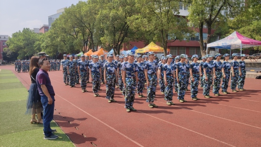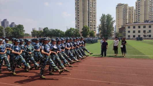 黄良辉一行来到军训场地与承训的武警教官沟通了解训练进展情况,并现场察看了正在进行队列训练的各方阵训练情况,对一周以来取得的军训成果表示满意,对承训教官表示了感谢。尖刀排方阵作为代表我院参加军训会操的队伍备受关注,他们在教官的指挥下现场展示了整齐的队列动作训练成果。看着同学们整齐划一的列队表演,院领导对坚持在高温下艰苦训练的教官和同学们表达了亲切的慰问和高度肯定,在关心询问同学们身体适应情况的同时,鼓励同学们发扬革命军人不怕苦不怕累的大无畏精神,保持严谨认真的训练作风,继续完成好后续军训任务,练出意志品质,练出优良作风,以出色的训练成果,迎接军训会操的检验,为我院争得荣誉,为自己的军训生活画上圆满的句号。