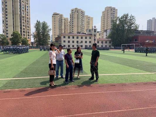 (学生通讯员 段莹莹)烈日炎炎,酷热九月,2019级新生军训已进入到第七天,为了解新生的军训情况,鼓舞士气,9月18日上午,我院党委书记黄良辉、副书记王俊峰、副院长熊知行等领导老师一行,来到田径场察看了我院新生军训情况。