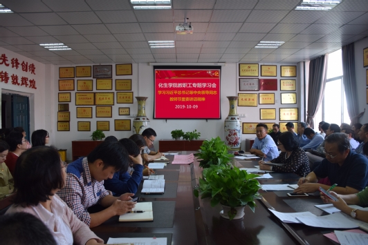 9月10日,在第35个教师节到来之际,习近平总书记和李克强、王沪宁等中央领导同志亲切会见参加庆祝2019年教师节暨全国教育系统先进集体和先进个人表彰大会代表,向全国广大教师和教育工作者致以节日的问候,体现了党中央、国务院对教育工作的高度重视和对广大教师的亲切关怀。10月9日下午,我院组织召开教职工学习会,专题学习习近平总书记历年教师节重要讲话和对教师工作的重要指示精神。院长郭孟萍、院党委书记黄良辉、副院长熊知行、副书记王俊峰与全院干部教师90余人参加了学习会。会议由黄良辉主持。