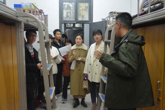 (学生通讯员 陈文俊 高倩)宿舍作为大学生学习活动的重要场所,除上课外,同学们大部分时间都是在宿舍里度过的,休息娱乐、谈朋交友、课余学习都离不开宿舍。为彰显各宿舍的特色,丰富校园文化生活,12月11日下午,我院于16、18栋进行宿舍文化评比。我院党委副书记王俊峰,学工科科长李婷,辅导员闵捷、简心怡以及学生干部担任评委对进入复赛的寝室进行评比打分。