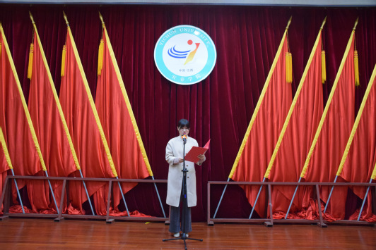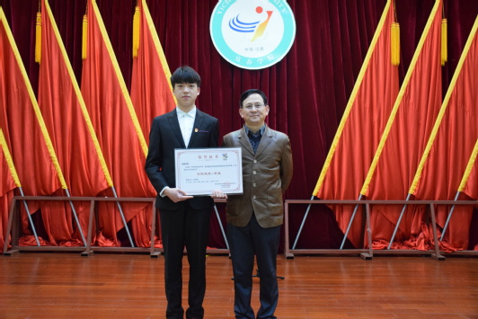 随后,优秀学生代表2017级制药工程班的王业健同学作了表态发言,他对老师们潜心教书育人的辛劳付出表达了感激之情,对青年学子用实际行动追逐梦想、用青春激情奋斗新时代表明了态度和决心。