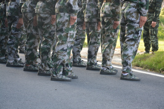 第一次,你们远离家乡来到陌生城市,面对陌生环境;第一次,你们摆臂挥出了统一的高度;第一次,你们走齐步踢出了整齐有力的步伐;第一次,你们练就了团队的默契,年轻的脸庞上写满了坚毅,心手相连的同窗情谊在苦与乐中悄然萌发。练唱军歌时,短暂的休息会让你们开心好久;开始训练时,坚毅的目光,一动不动的军姿,是你们一天天成长的见证。