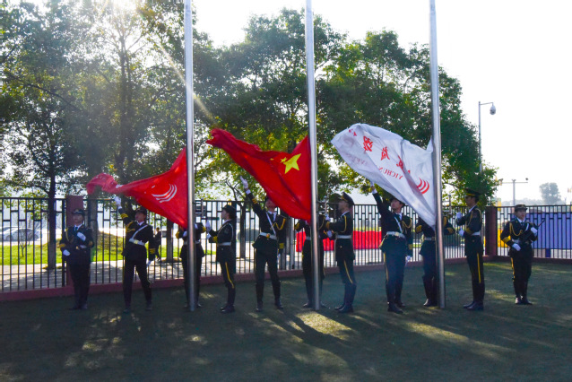 “成功的花,人们只惊羡她现时的美好,然而当初她的芽儿,浸透了奋斗的泪泉,洒遍了牺牲的血雨。”这句话用来诠释国护队一点儿也不为过。在校运开始的前几个月,国旗护卫队就已经开始了他们的训练,无论天气如何,刮风下雨,骄阳酷暑都无法阻挡他们训练的脚步,有时他们也会认为训练繁重且枯燥无味,也曾想过放弃,但每当看到那一抹国旗红,一腔热血便沸腾于心,终是停不下脚步。