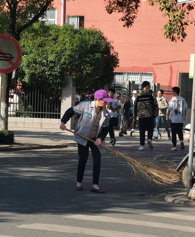 衣着朴实,却散发着不平凡的光辉。或在人潮拥挤时身处其间,干净利落地清扫所见的垃圾,或在傍晚寂静时踏遍场地,无比耐心地留下朴实的脚印。笔者在傍晚有幸采访到了一位保洁员,刚刚进行采访时,他正在用心清理操场上遗留下来的杂物。“我觉得我的工作一点也不累,一天下来,还能够坚持得住,看着同学们在一起,看到他们欢声笑语,一起快乐奔跑,我也跟着高兴。”当笔者问及他的工作情况时,他如是说道。话语朴实无华,却十分令人感动,直到天色渐渐隐去光辉,这位保洁员才缓缓离去。