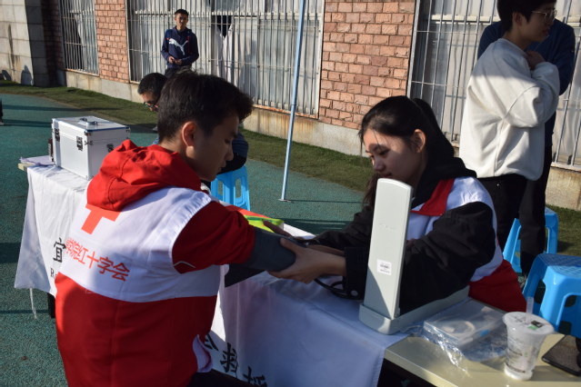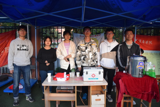 他们是赛场上的一抹红,无论你在操场何处,一定见过他们的身影,他们频繁的穿梭于赛场之间,用渺小的身躯保护着运动员与观众的安全;他们是初冬下的一杯暖,他们不辞朝暮,兢兢业业地制作特制的茶水,只为在这有着些许寒意的初冬中,给运动员及过往的路人递上一份温暖;他们是绿茵场上的一点白,他们是人间天使,是运动健儿们强有力的后盾,在医疗救护点,他们备好了氧气袋,急救箱以及日常必备的医用药品,以便随时应对突发情况,他们就是我们的强心剂、镇定针。