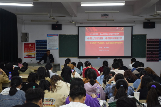 11月20日晚,我院党委书记黄良辉以《中国之治新境界 中国发展新征程》为题,为学员们作了学习党的十九届四中全会、五中全会精神专题辅导。他向大家阐释了十九届四中、五中全会的召开背景及其重要意义,对全会审议通过的《决定》及《建议》的主要内容和习近平总书记的重要讲话精神进行了解读,深入浅出地阐述了中国特色社会主义制度和国家治理体系发展的历史性成就和显著优势,阐明了关于新发展阶段、新发展理念和新发展格局的时代背景、形成过程、基本内涵和重大意义。他勉励同学们要加强政治理论学习,站稳政治立场,自觉增强“四个意识”、坚定“四个自信”、做到“两个维护”,紧密团结在以习近平同志为核心的党中央周围,同心同德,顽强奋斗,将青春奉献祖国,为全面建设社会主义现代化国家而不懈奋斗。