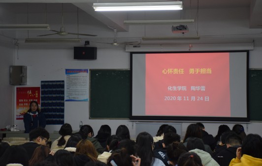 11月24日晚,我院党委宣传委员陶华蕾老师以《心怀责任 勇于担当》为题,为培训班学员上了一堂理想信念教育专题党课。陶老师以“责任”、“担当”为主题,结合生动具体的事例,教育引导学员们要坚定理想信念,端正入党动机,强化“舍我其谁”的责任意识,拥有担当时代大任的勇气与信念,在学习、工作和生活中发挥模范带头作用,以优异的表现接受党组织的考验与挑选。