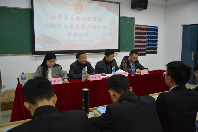 12月14日晚的开班仪式上,彭勃老师致辞并对参训同学提出要求:一要做先行者,学好党的科学理论,担负时代重任;二要做引领者,做好岗位工作,承担应尽责任;三要做践行者,积极主动作为,做到知行合一。南建忠老师解读了本次培训方案,对培训主题、目的和日程安排作了说明,他强调,此次培训旨在提高学生干部的思想政治素质和基本工作能力,增强学生干部的身份意识、责任意识、公仆意识,提高组织协调、交往沟通、团结合作能力,成为担当责任、富有活力、勇于创新、敢于挑战的优秀学生干部。