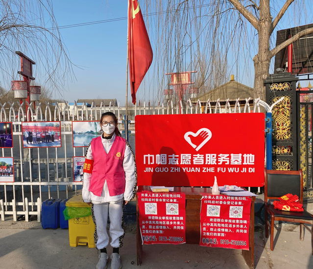在疫情防控志愿服务工作中,有这样一群人,他们或是在寒风中尽职尽责,对非本地人员进入村庄时叫停;或是给返乡人员打电话,通知他们进行核酸检测;或是在村里上下奔走,参与人口排查及体温检测等工作。来自我院19级化学班韩茜雅、19药学一班的赵怡冉和19应用化学班的凌允华就是疫情防控的前线志愿者,他们坚定的站在疫情防控的前线,测量体温,登记信息。韩茜雅说:“作为大学生,应当在疫情防控期间为家乡人民的安全作出自己的贡献,担当责任与使命。”赵怡冉说到:“疫情防控志愿服务工作带给我最大的感受就是责任和勇敢,因为肩上有责任所以能勇敢面对和坚持。”凌允华说到:“这份工作给我最大的感受是无比的亲切感与责任感,与乡亲们的互动给我带来了亲切感,守护村庄安全,防止外来车辆进入,则是一种责任感。”在社区执勤引导工作的19药学二班的高倩同学,她说:“寒假疫情防控期间,村里进行了四次核酸检测,每次都需要志愿者们去登记,在寒冷的冬天登记村民们的信息,但是我们没有退缩,而是带着红袖章与满满的干劲,以一颗爱国为民之心,积极参加到疫情防控志愿服务活动中。”社区疫情防控服务工作需要耐心与良好的沟通能力,因为有耐心,面对不断重复的工作时才能坚持下去,因为有良好的沟通能力,在请当地居民配合工作时才能顺利进行。正是因为有许许多多像高倩一样有耐心和细心的志愿者加入,社区疫情防控才能扎实开展。
