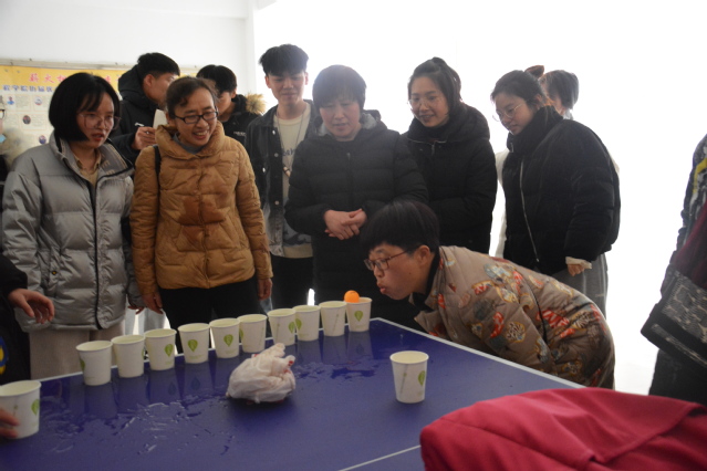 此次趣味活动有两个项目,分别为“吹乒乓球”与“背靠背跳一跳”。活动秉持着关爱、和谐、互助的原则,以促进女教工们更好的沟通交流。活动现场将42名女教工分成5个队进行比赛,女教工们在活动负责人的“预备”口令下齐刷刷的做好了准备姿势,像拉满弓的箭,一触即发,随着活动口令声的开始, 女教工们团结协作的认真参与着,现场氛围十分热烈。随着时间的推移,活动在女教工的开怀大笑中圆满结束。