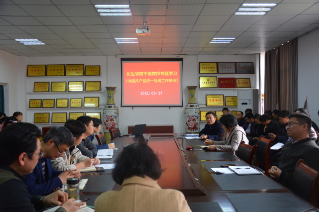 (学生通讯员 刘美珍 徐瑞聪)根据学校相关工作部署,3月17日下午,我院组织全院干部教师专题学习了《中国共产党统一战线工作条例》(以下简称《条例》),院长郭孟萍、院党委书记黄良辉、副院长张文彬、院党委副书记陶华蕾以及全院教职工参加了专题学习会,学习会由黄良辉主持。
