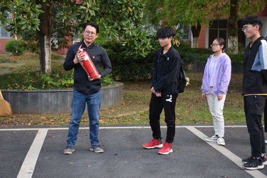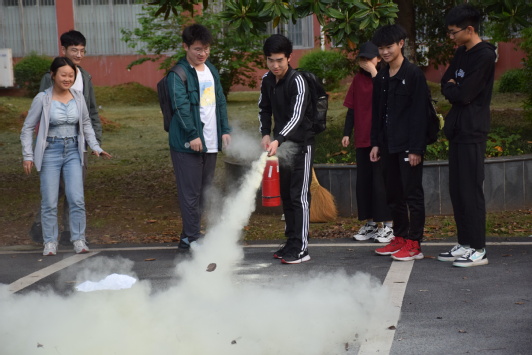 此次消防演练活动按照“普及消防知识、学习逃生方法、灭火器使用”三个部分有序进行。活动中,梁辉老师就消防常识普及、寝室安全用电等诸多隐患因素预防措施逐一向同学们进行了阐述,他指出,火灾安全隐患是威胁人身安全的重要因素之一,要加强火灾预防意识,在寝室中做到排插有序、用电规范,要善于从网络及身边发生的火灾事故案例中吸取经验与教训,确保不出现同样的错误,从而将安全规范落实到位。活动中,梁辉老师身体力行的向同学们演示了遭遇火灾时的逃生措施。他强调,在遇到火灾时,要正确运用消防演练时候的知识,例如“灭火器使用、湿毛巾效能、火势过大关紧门窗、学会呼救”等,要做到有条不紊、动中有静、灵活应变。演练中,梁辉老师详细地向同学们介绍了灭火器种类、灭火器的运用范围,并特别提到干粉灭火器的使用方法、分解动作以及注意事项,即“查看保质期、颠倒混合充分、保险销去除、左手握喷管,右手提压把瞄准火源喷射扑灭火情……”等诸多方面。通过本次演练,同学们都受益匪浅。