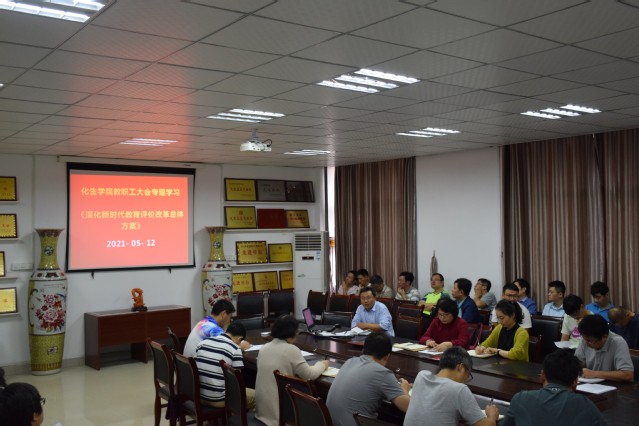 (学生通讯员 赖怡臣 姜凯仁) 5月12日下午,我院召开教职工大会专题学习《深化新时代教育评价改革总体方案》。我院院长郭孟萍、院党委书记黄良辉、副院长张文彬、院党委副书记陶华蕾以及全体教职工参加了会议,会议由黄良辉主持。