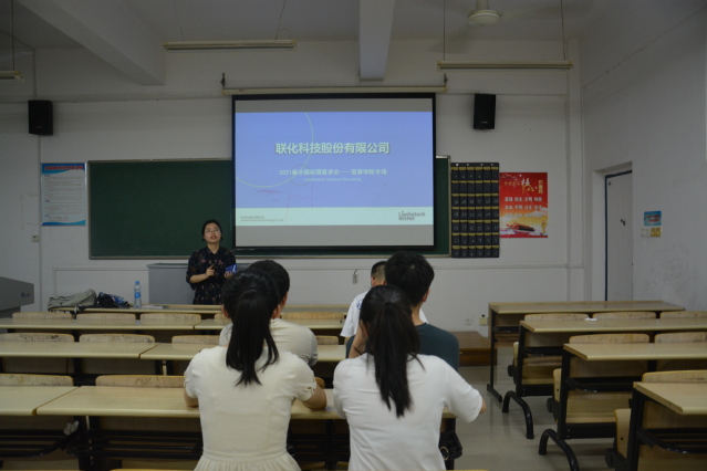 (学生通讯员 袁欣)为促进2021届毕业生在专业对口工作岗位顺利就业,5月14日下午,我院于二教楼举办联化科技股份有限公司专场招聘会,我院18、17级化学、药学专业2021届毕业生参加了此次招聘会。会议由企业宣讲人施佩衣主持。